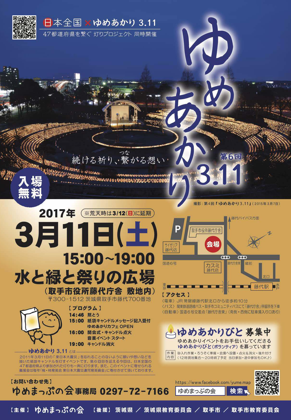 この「ゆめあかり3.11」は、趣旨にご賛同いただいた、おおくのボランティアのみなさのにより実現されます。ありがとうございました。