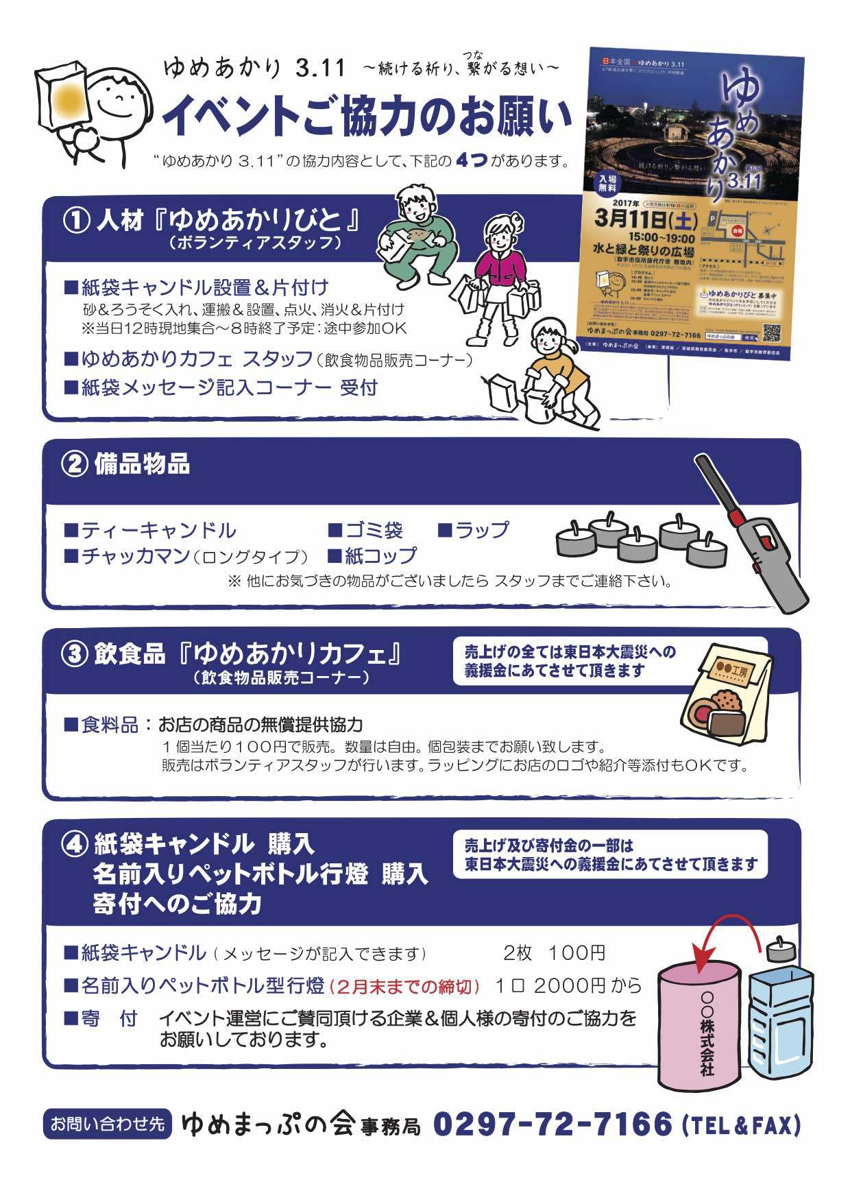 その他、大勢の皆さまのご協力により「ゆめあかり3.11」を迎えることが出来ました。